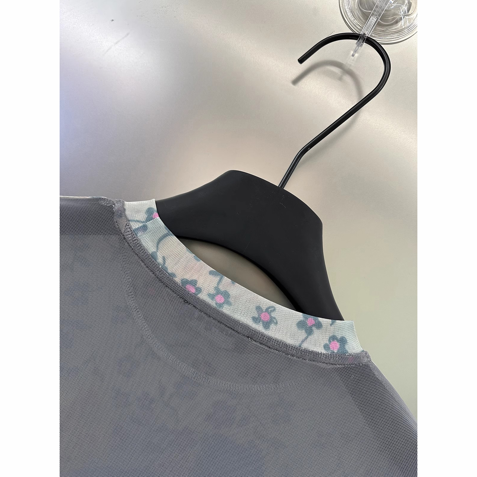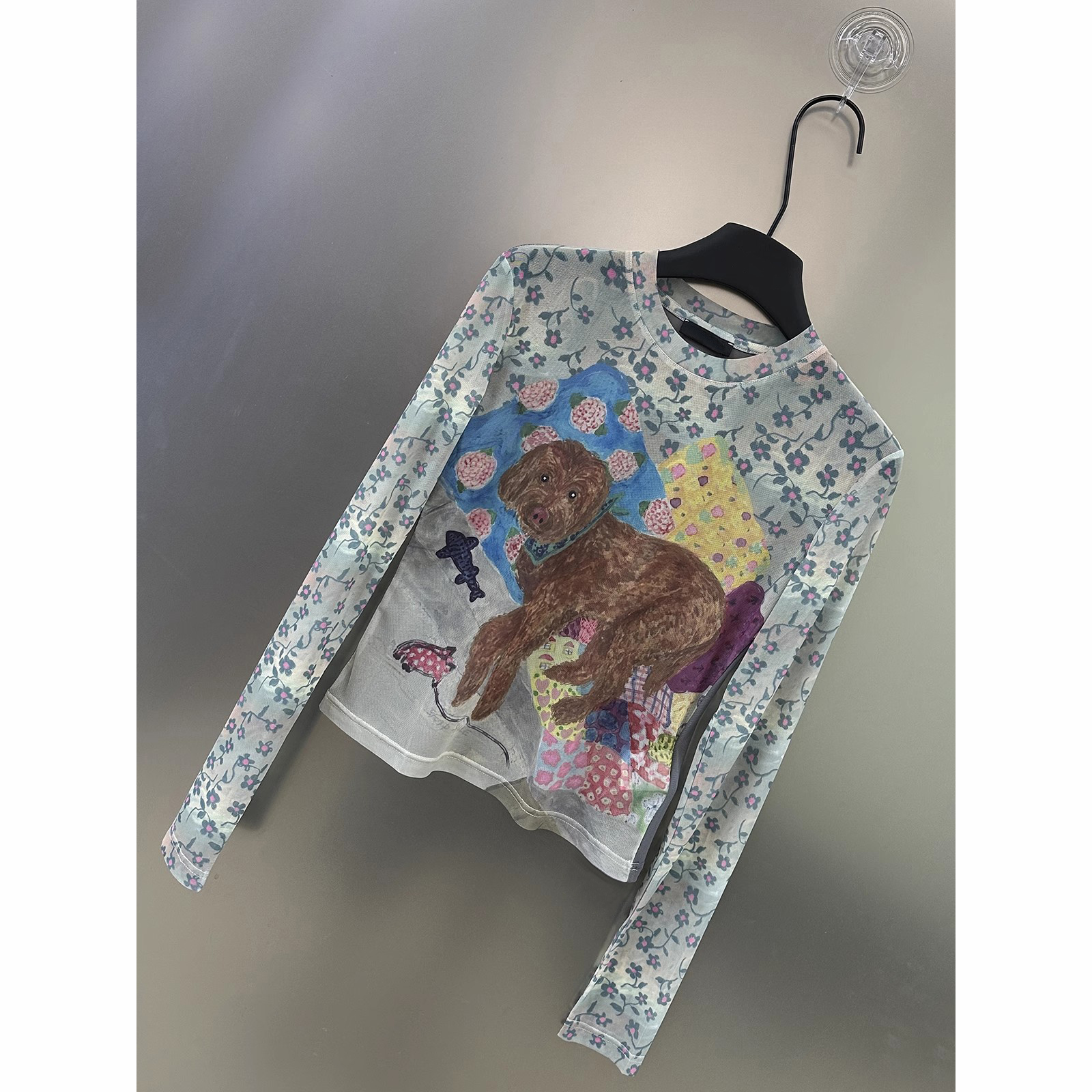 小众涂鸦小狗碎花花色防晒长袖 设计师款 T恤女 新款 欧洲站2025夏季