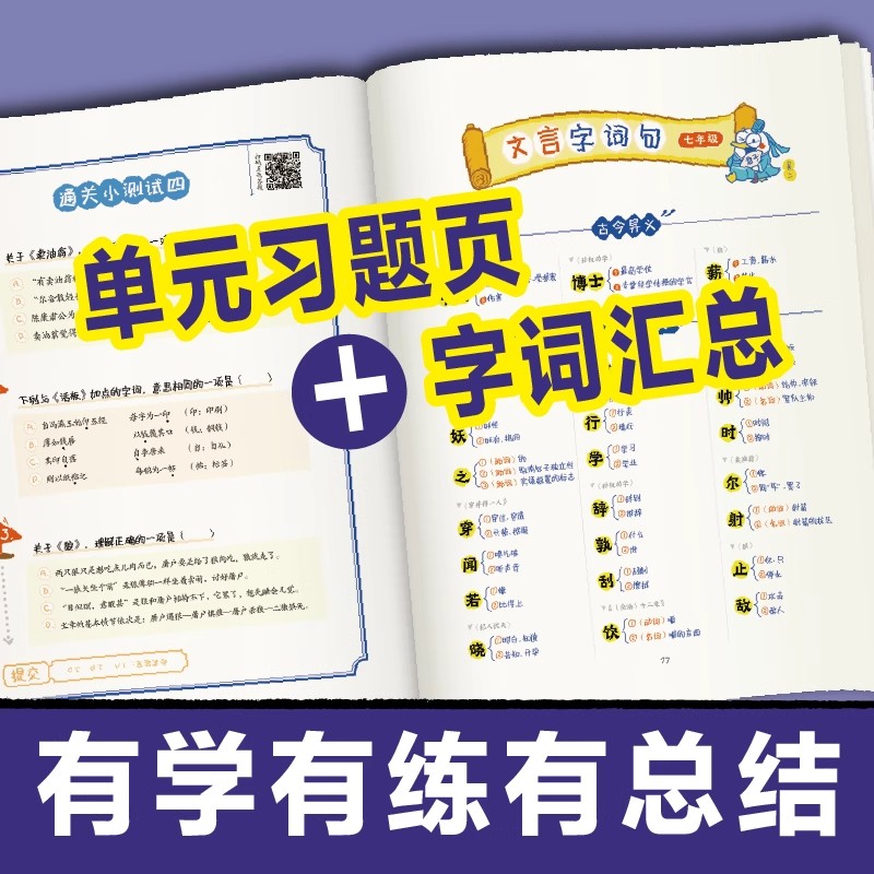 童书 语文七八九年级中考背诵神器初一二三中学生必备文言文注音版 开心 初中必背古诗词和文言文漫画笔记全解初中衔接2025人教版