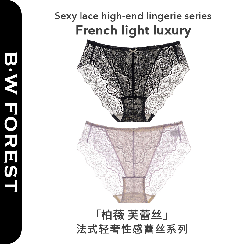 女 桑蚕丝纯欲无痕中腰三角裤 维多利亚性感黑色蕾丝内裤 女2025新款