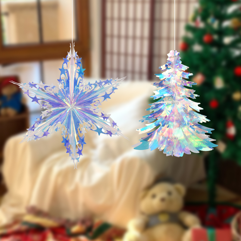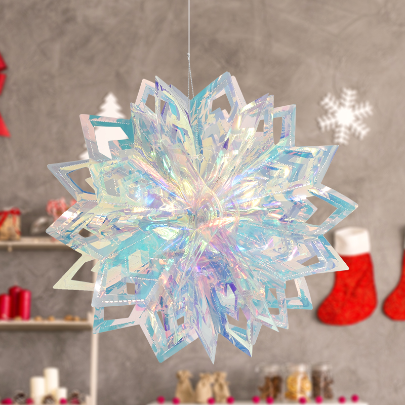 五角星镭射炫彩雪花星星吊饰圣诞装 饰店铺场景布置天花板吊顶挂饰