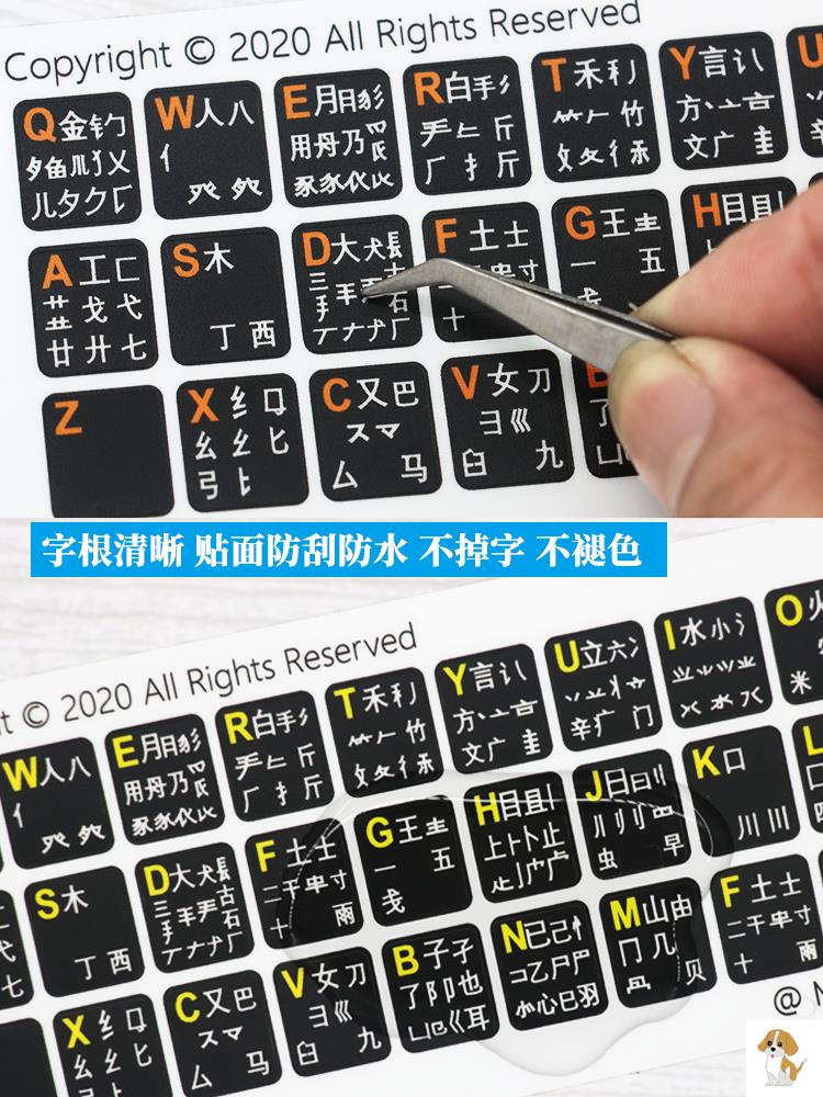 键盘贴膜贴纸键鼠一体保护膜笔记本键盘贴纸单个修复防水 台式 五笔键盘贴 笔记本电脑打字五笔学习字根表字型
