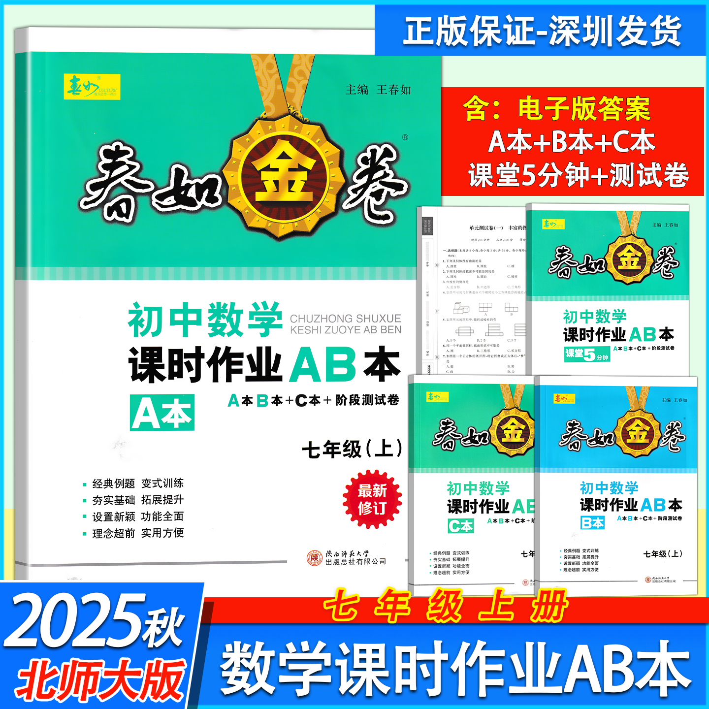 含A 深圳春如金卷初中数学课时作业AB本七八九年级上下册数学北师版 电子答案深圳789上下数学课本同步练习册 测试卷 可单选