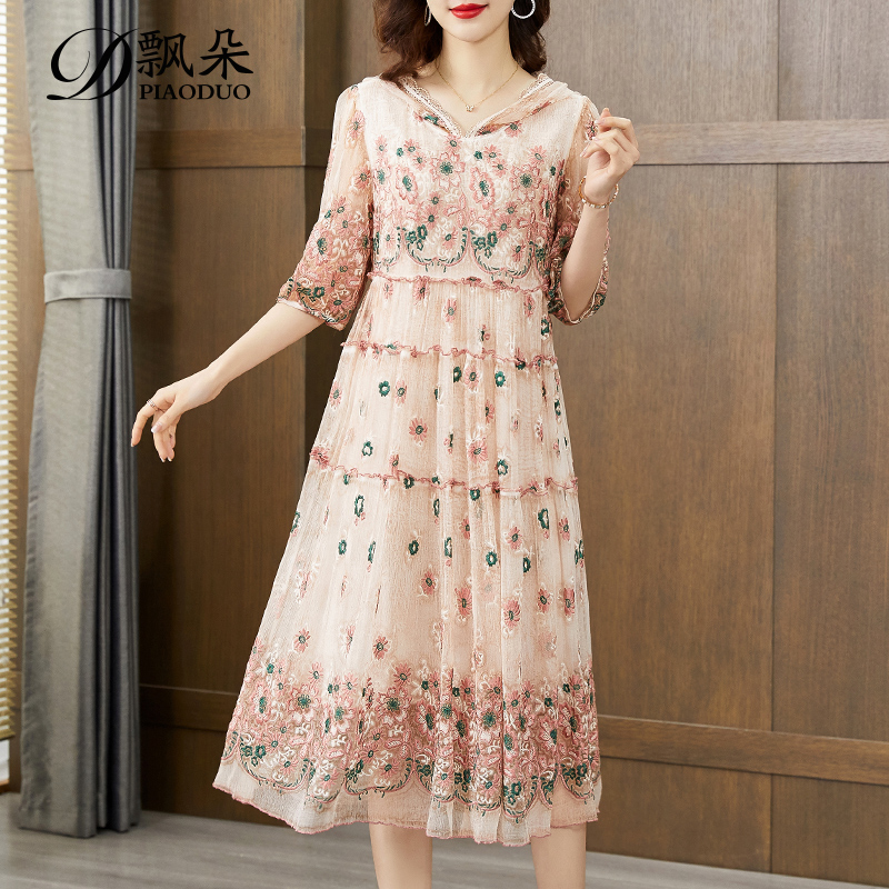 中长款 紫涵肌理感提花衬衫 休闲轻国风长袖 新款 网纱裙 连衣裙女秋季