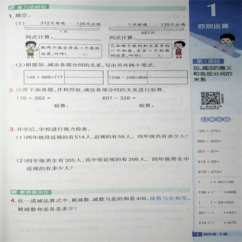 含单元 课堂期末专题复习活页检测卷 4四年级 过单元 刷专项 下册 作业作业本 数学 滚动 人教版 全彩版 2025春