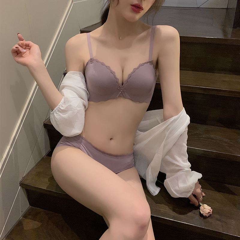 无钢圈无痕内衣女小胸聚拢文胸加厚bra平胸专用套装 性感上托胸罩