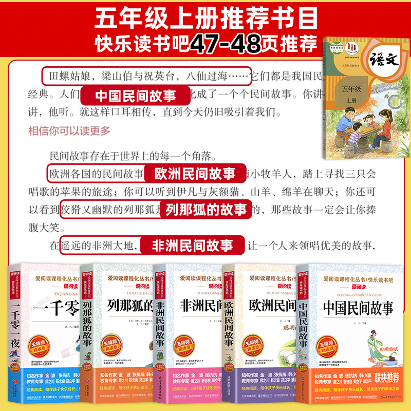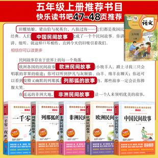 故事非洲民间故事欧洲一千零一夜课外阅读老师推荐 田螺姑娘列那狐 快乐读书吧5 中国民间故事五年级上册必读课外书正版 全套5册