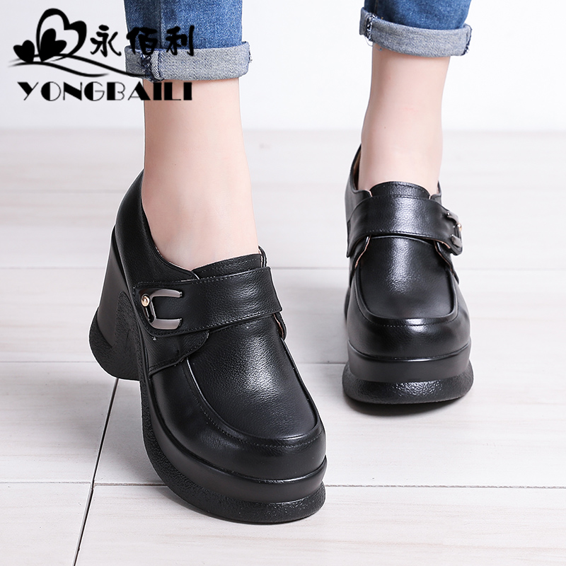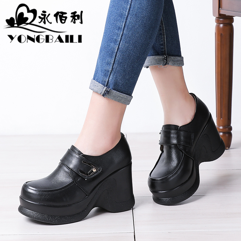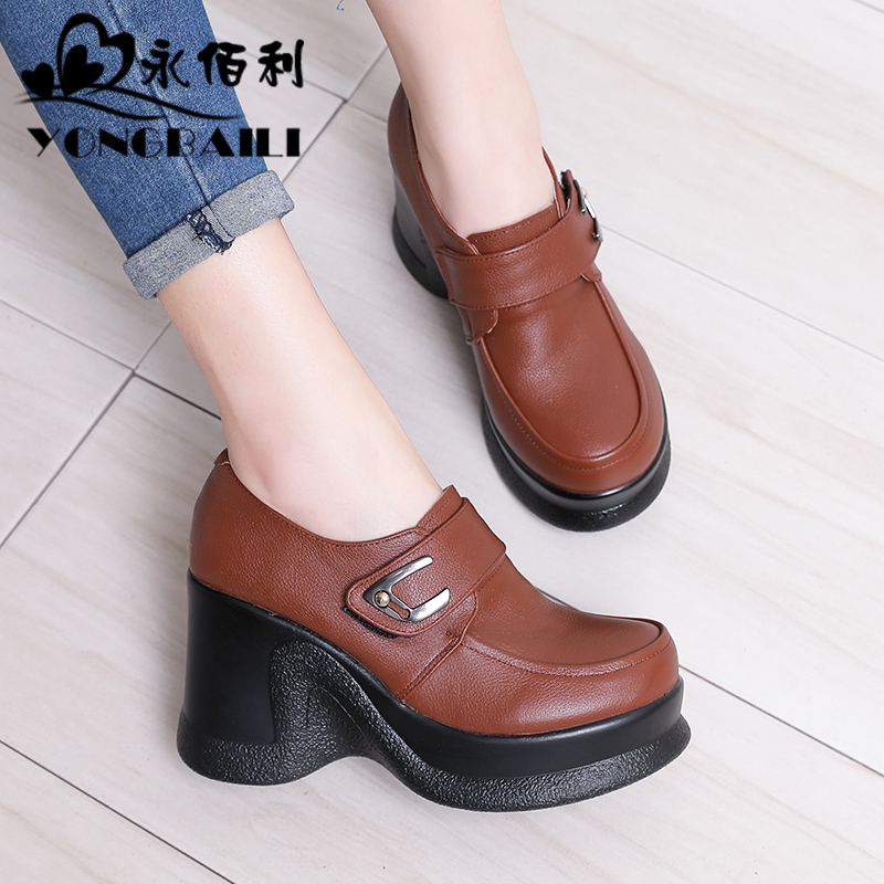 松糕女鞋 潮皮鞋 2025春新款 女深口复古时尚 真皮单鞋 厚底坡跟高跟鞋
