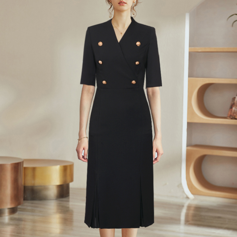 法式 高级感气质开叉中长裙子包臀小黑裙 褶皱收腰吊带连衣裙女夏季