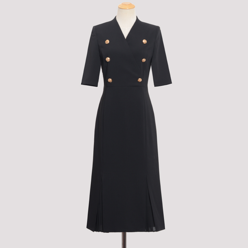 张婧仪同款 圆领连衣裙拼接假两件A1FAF2922 朝夕太平鸟三醋酸法式