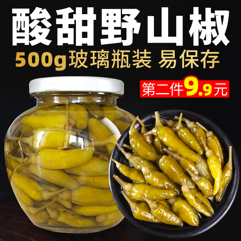 广西野山椒酸甜口泡小米辣泡椒泡辣椒火锅店下饭菜小米椒瓶装 500g