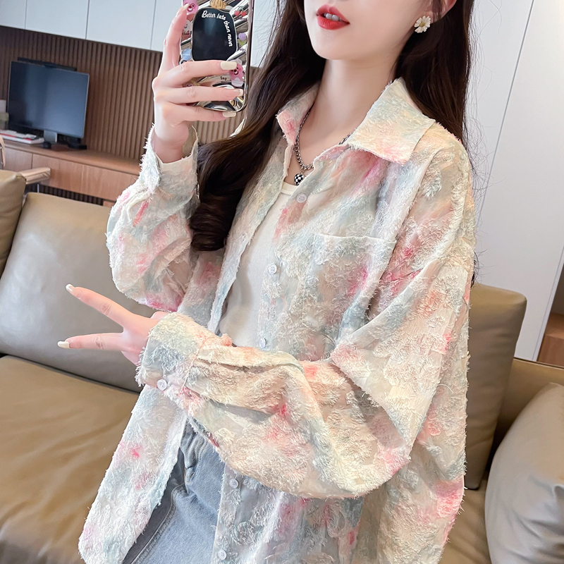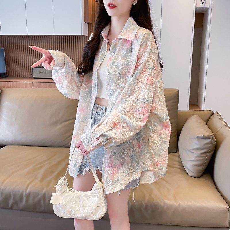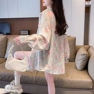 凉感防紫外线开衫 夏季 外套防晒衬衣X 女2025新款 拉夏贝尔蓝色衬衫