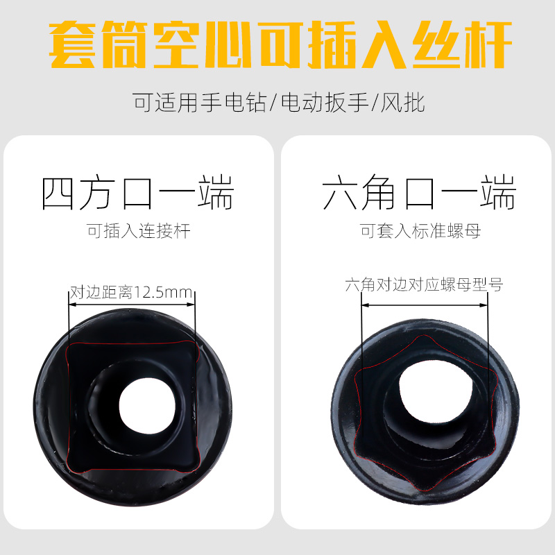 轻钢电动扳手吊顶套筒加长型专用拧螺丝螺母六角套筒m8空心丝杆