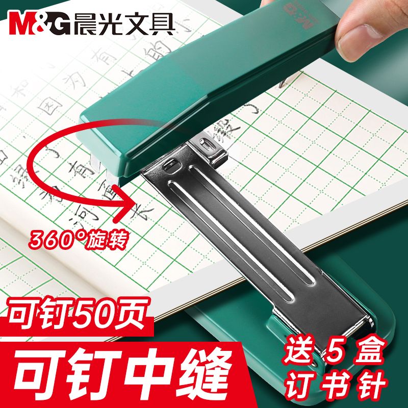 晨光学生用订书器订书机可旋转大号办公用大型省力钉书机订厚书装 订成册神器 订机外卖打包家用订中缝定书机装
