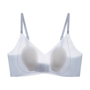 女 文胸兔耳朵薄款 内衣女超薄款 无痕大胸显小果冻条软支撑夏天夏季