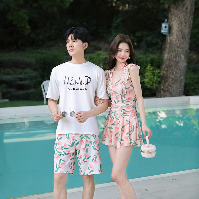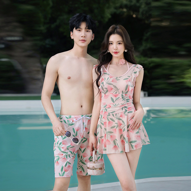 海边度假泡温泉游泳装 女连体保守男沙滩裤 情侣款 情侣泳衣2025新款
