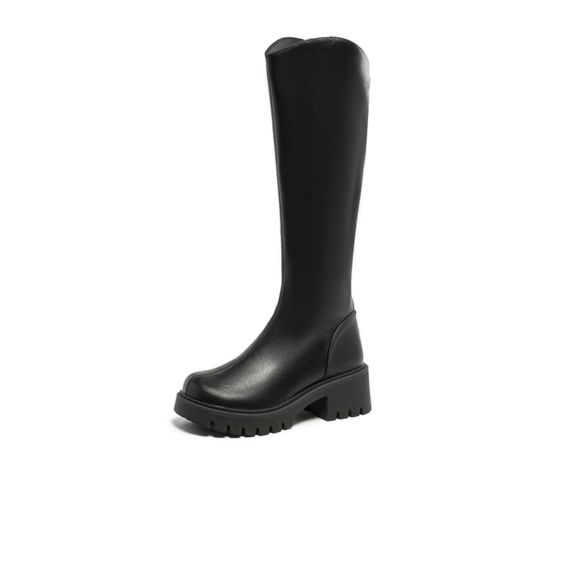 大东黑色长筒靴女2025新款 骑士靴 春秋厚底高筒小个子v口靴子女款