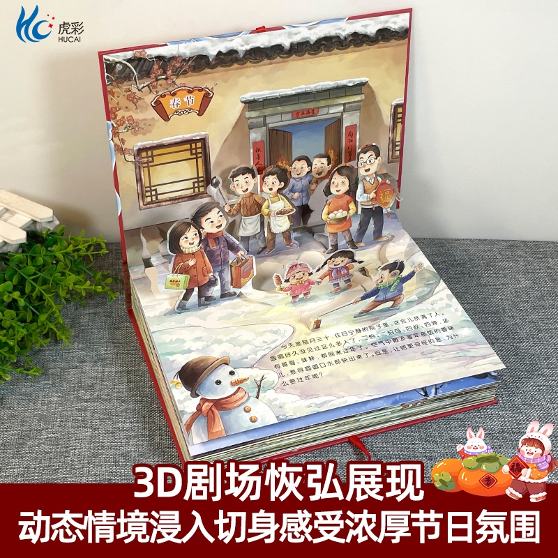6周岁宝宝幼儿园启蒙认知早教安静机关玩具书 正版 中国传统节日3D立体剧场书十二生肖恐龙世界上下儿童3d翻翻书绘本故事幼儿0