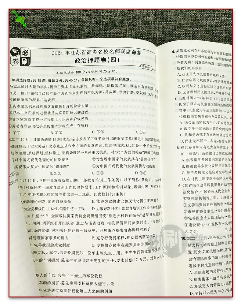 理想树2024年高考必刷卷胜券押题卷政治江苏专用高中政治强化训练高考备考一轮二轮考前猜题模拟试题汇编名校名师原创卷临考冲刺