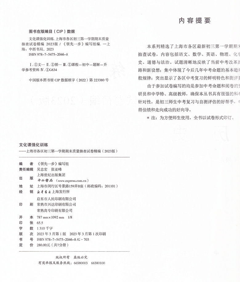 2025年上海中考一模卷数学初三文化课强化训练语文英语物理化学历史道法中西书局领先一步市初中九年级摸考试卷2024版 中考卷子全套