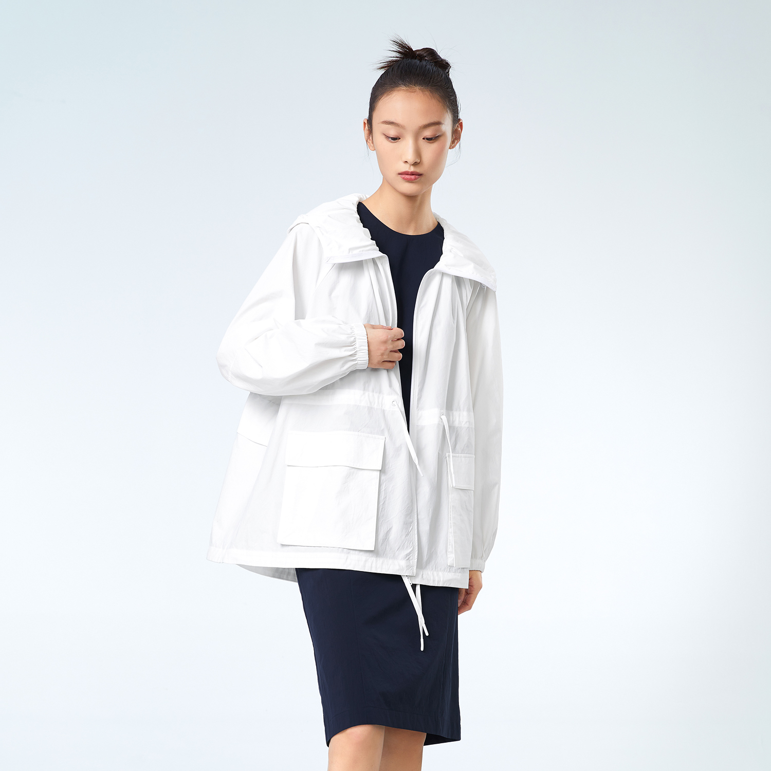 连帽冲锋衣女小个子防风棒球服短外套开春夹克上衣女百搭工装 风衣