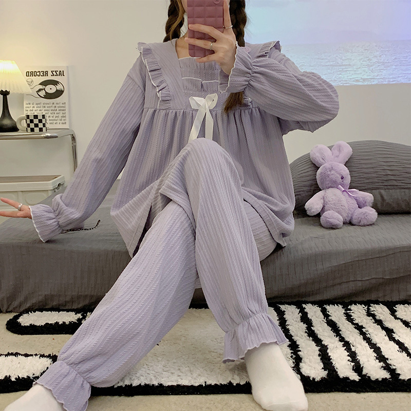 家居服薄款 秋冬款 冬季 睡衣女士春秋款 套装 纯棉长袖 大码 春秋季