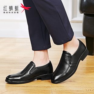 商务休闲透气舒适一脚蹬爸爸鞋 红蜻蜓皮鞋 式 真皮软底2025新款 男士