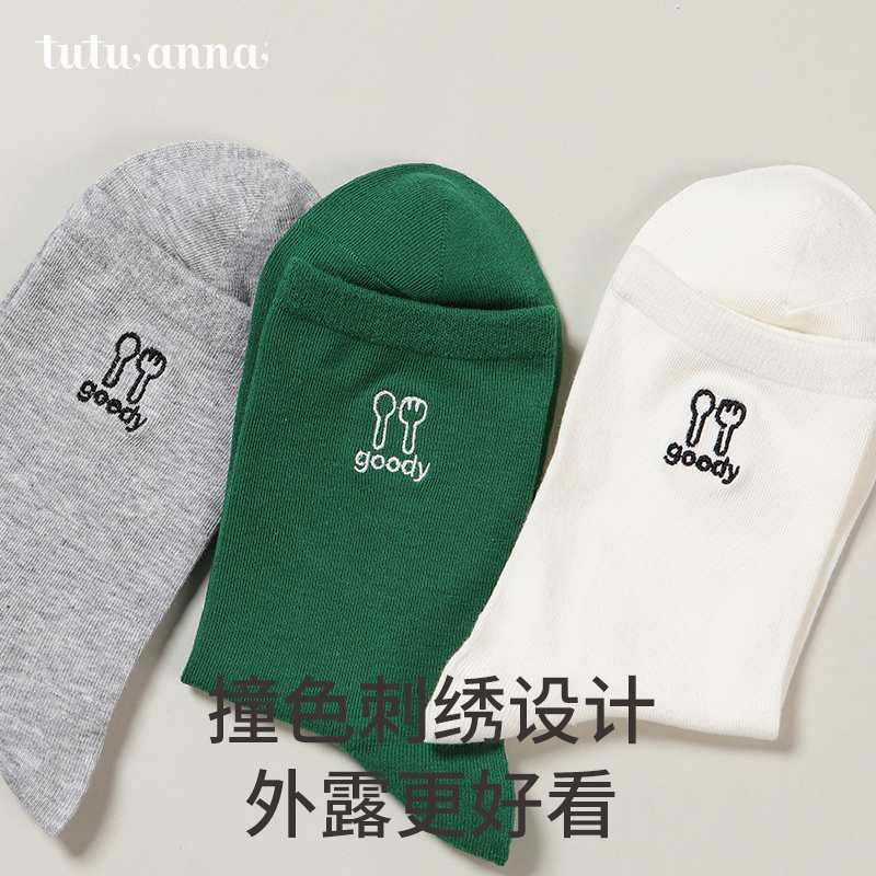 透气运动风中短筒袜无骨 薄款 全棉短袜子女春秋季 纯棉吸汗防臭夏季