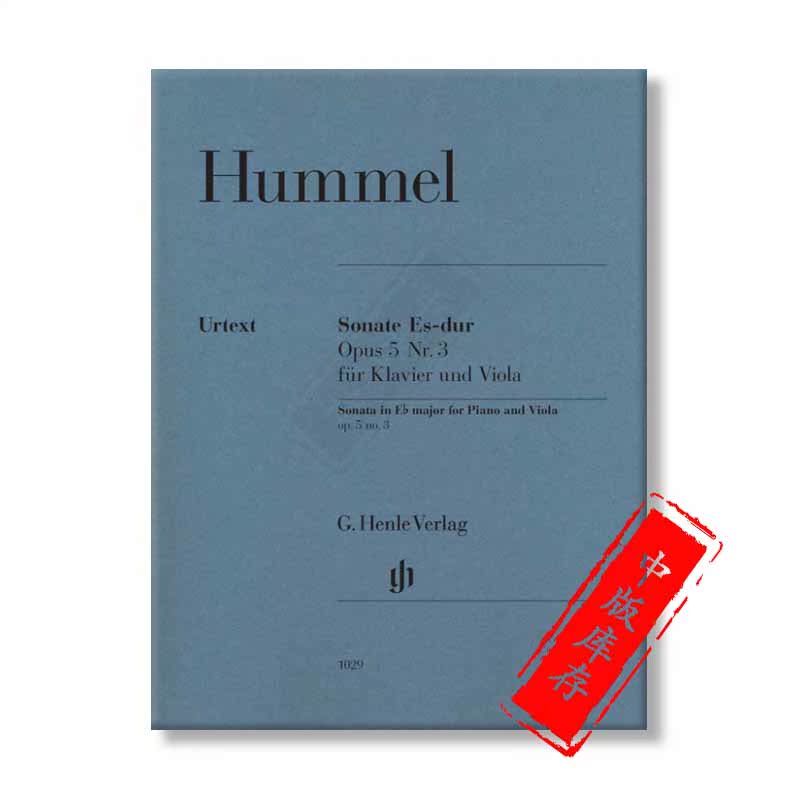 no3 HN1029 major Viola 降E大调 op5 Sonata 亨乐Henle原版 附钢伴 flat 胡梅尔中提琴第三奏鸣曲 乐谱书 Hummel