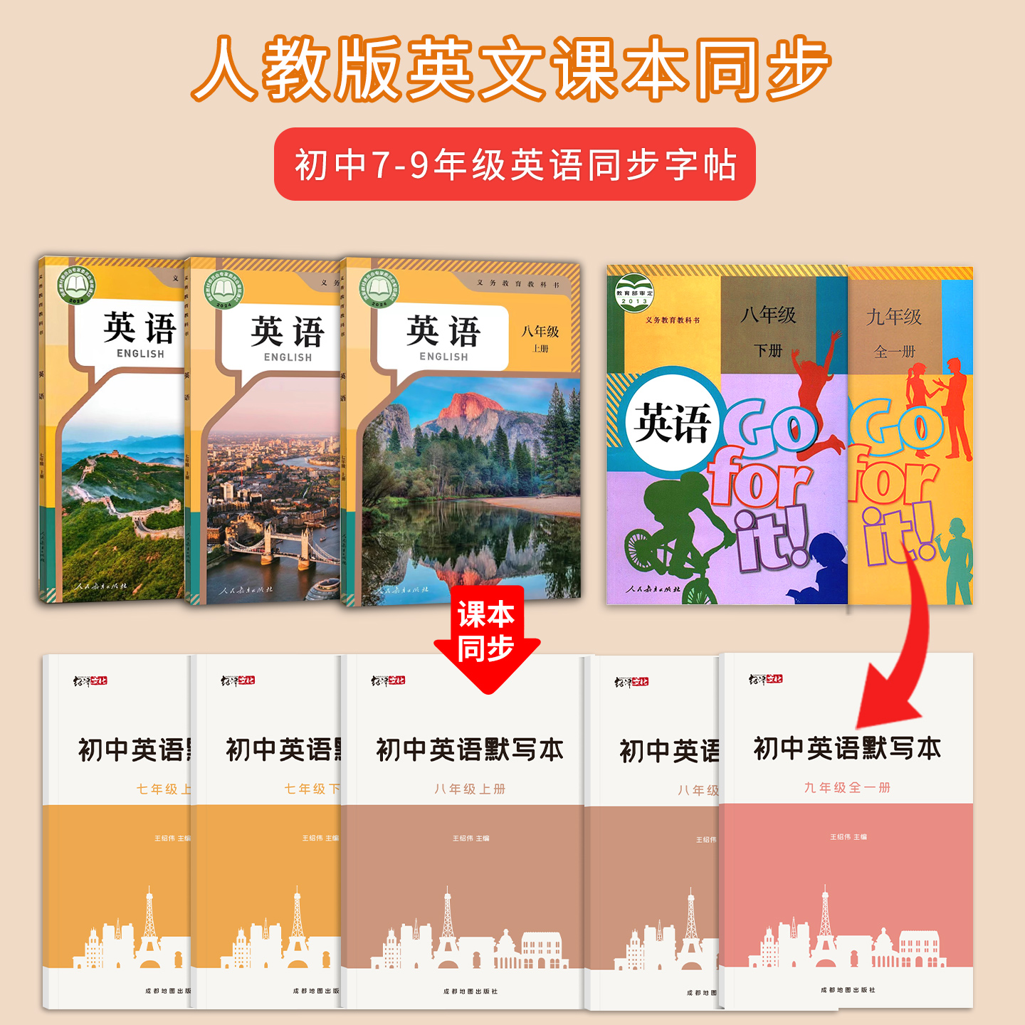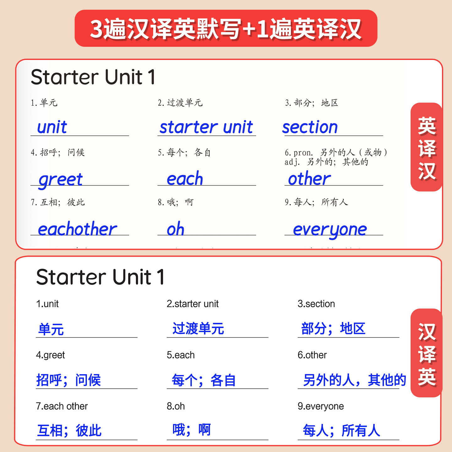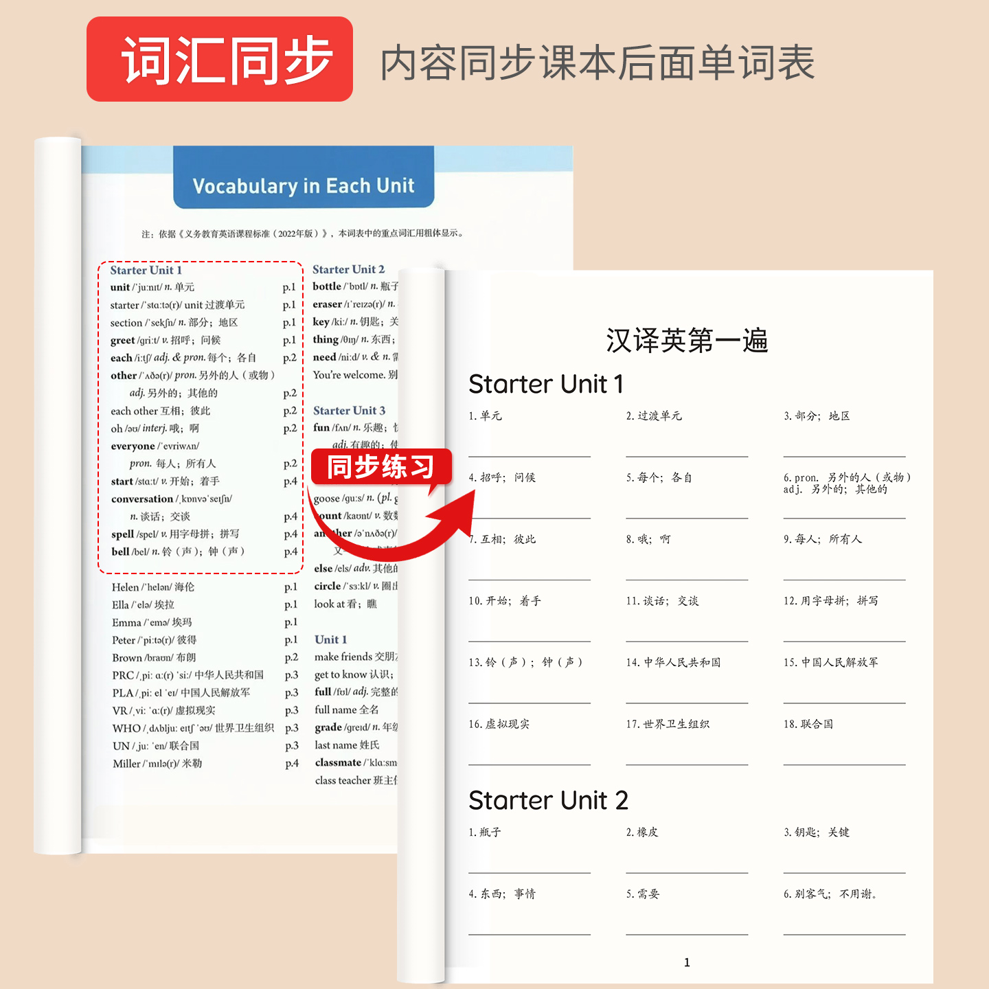 人教版 初中英语默写本初中生789七八九年级上册下册听写本记忆本单词短语句子词汇英汉互译练习本初一二三英文课本同步单词默写本