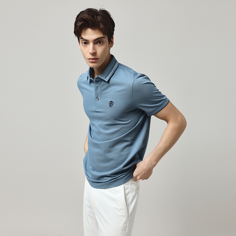 奥莱夏季 蓝色翻领Polo衫 新款 logo绣花短袖 舒适版 RARE威雅男装