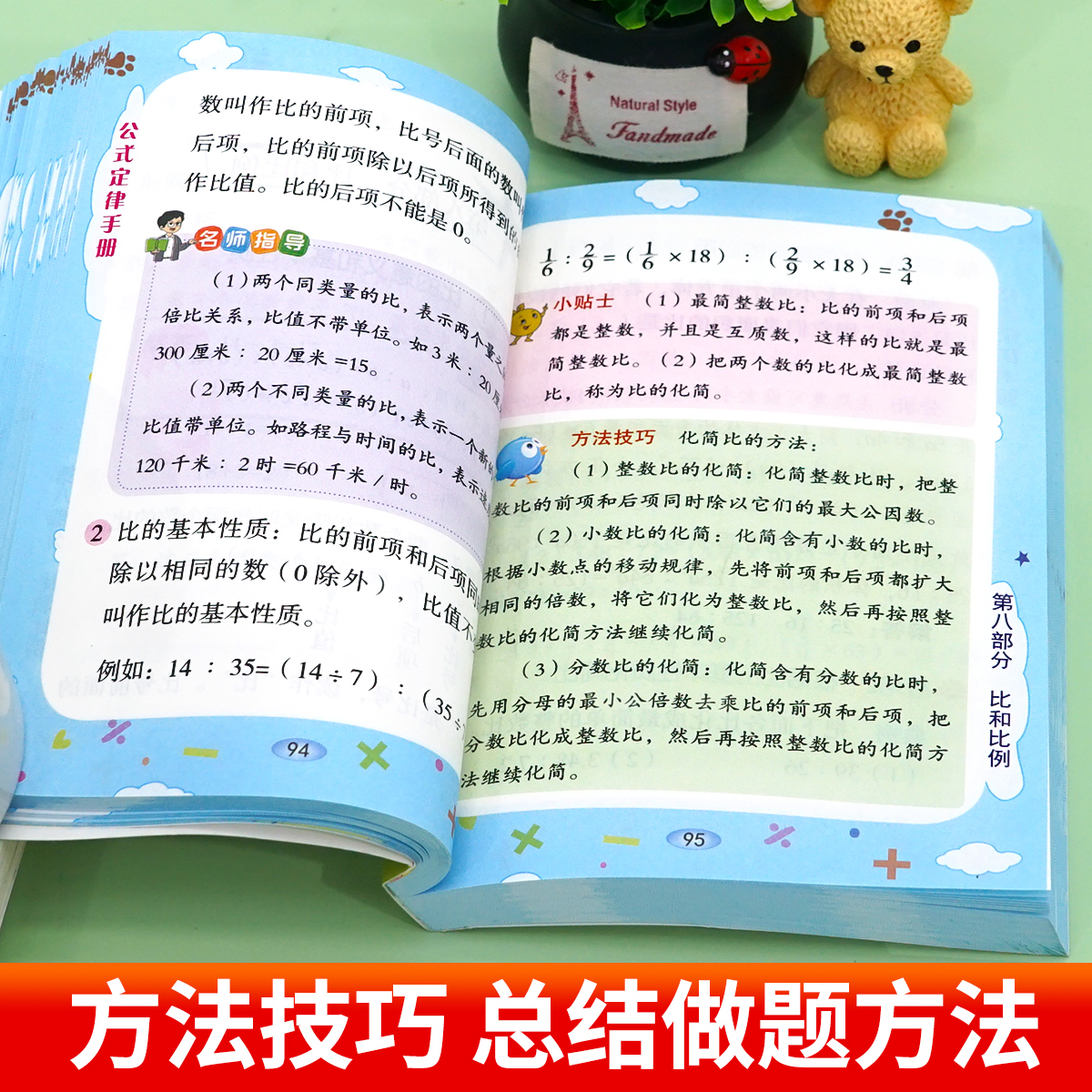 定律手册小学生1 定律知识点汇总思维逻辑训练一年级二年级三四五六年级下册上册正版 6年级人教版 大全考点及公式 公式 小学数学公式