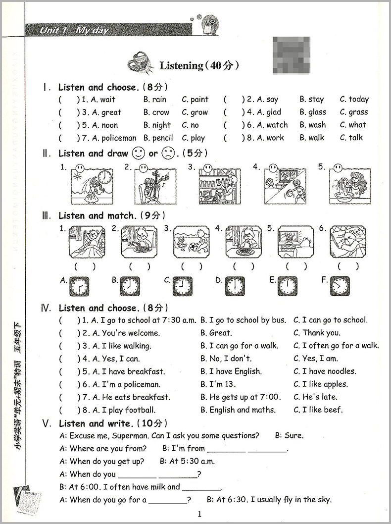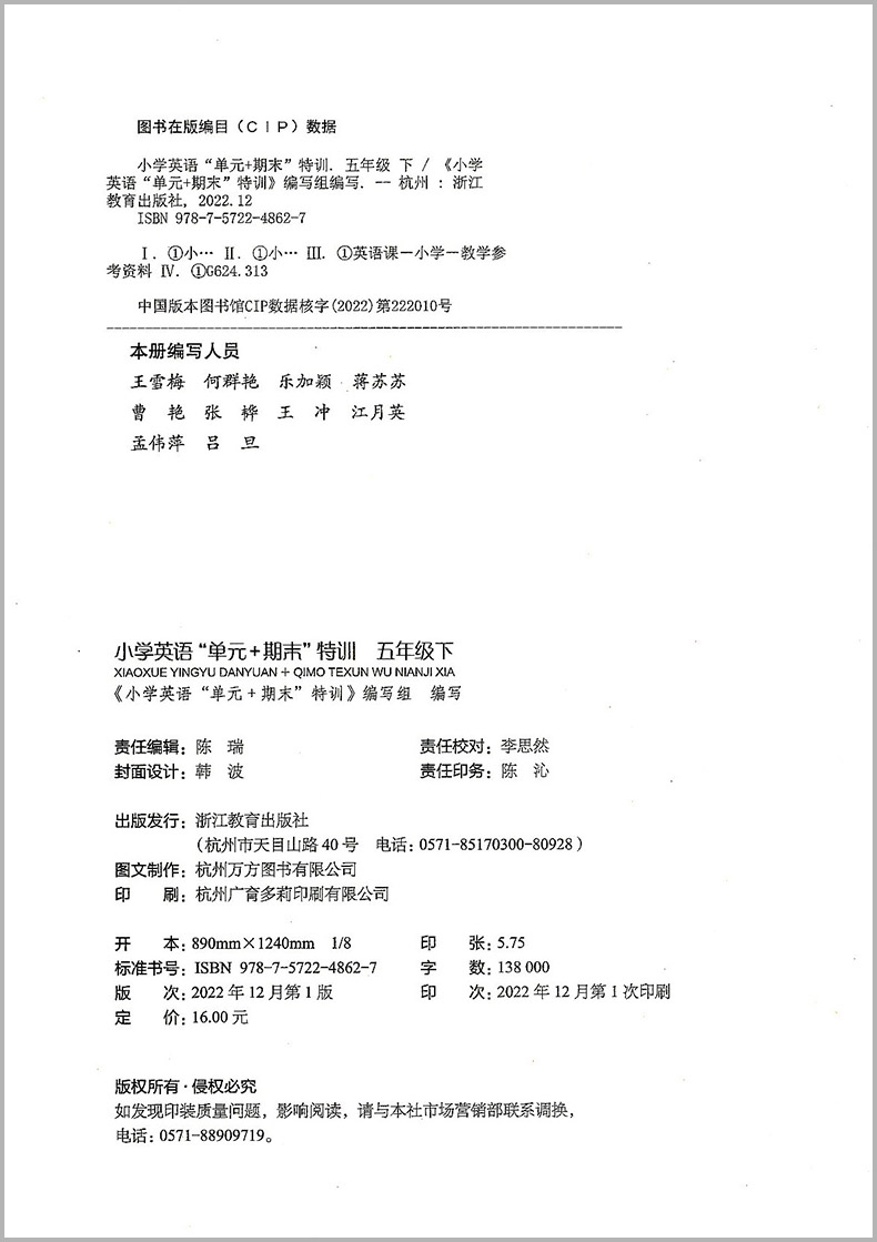 期末特训五年级下册PEP人教版 期末测试卷浙江教育出版 英语单元 听力练习测试小学英语同步单元 社 同步检测考试卷扫码 小学英语单元