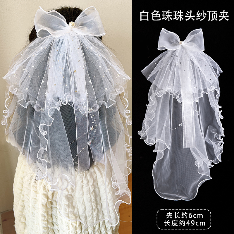 儿童蝴蝶结发夹在逃公主头纱女童婚礼花童蓬蓬纱新款 皇冠生日头饰