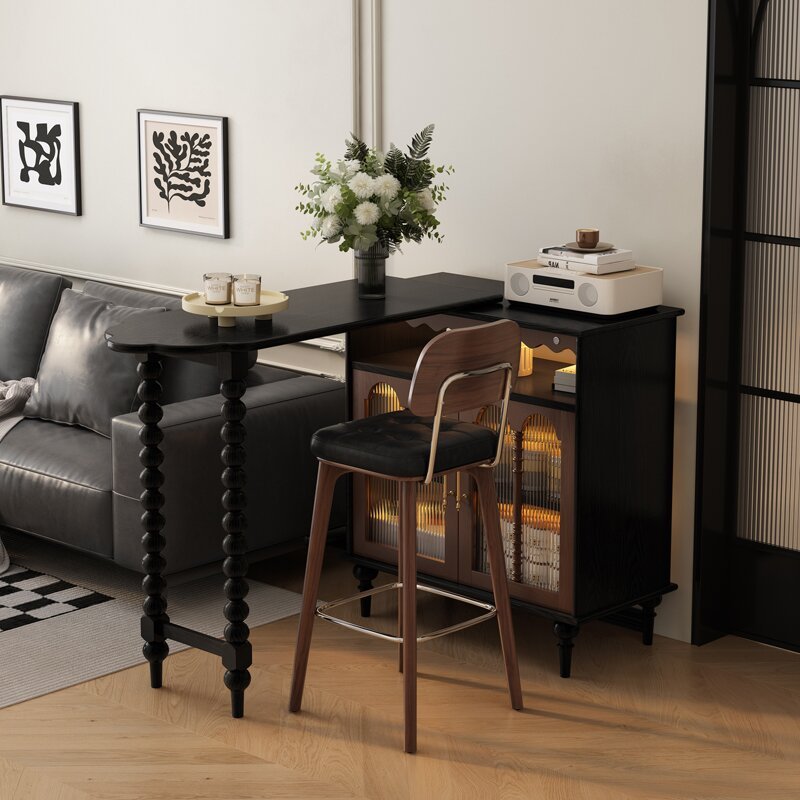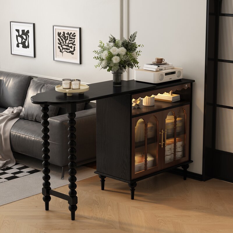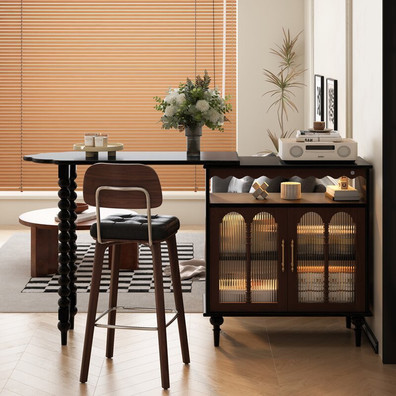 法式 实木伸缩吧台柜家用隔断柜一体客厅阳台收纳柜古典餐边柜