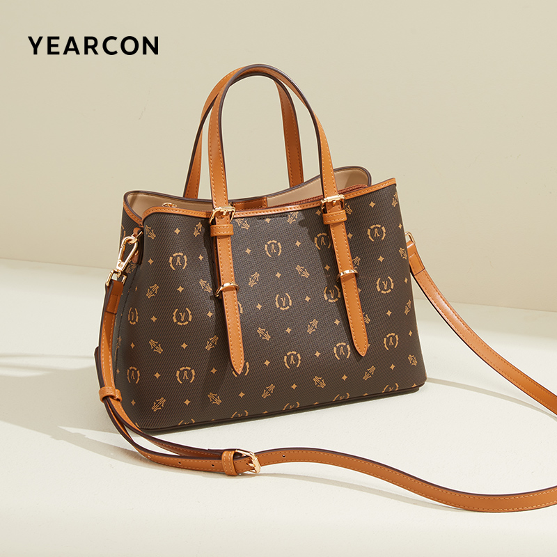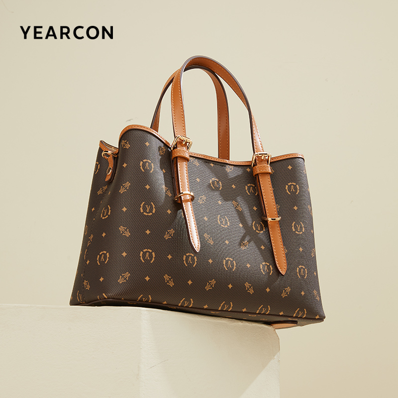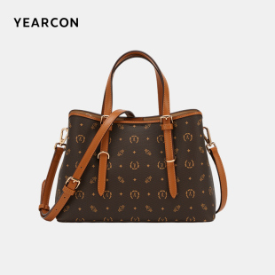 意尔康托特包新款 老花手提包大容量通勤复古印花pvc斜挎包单肩包