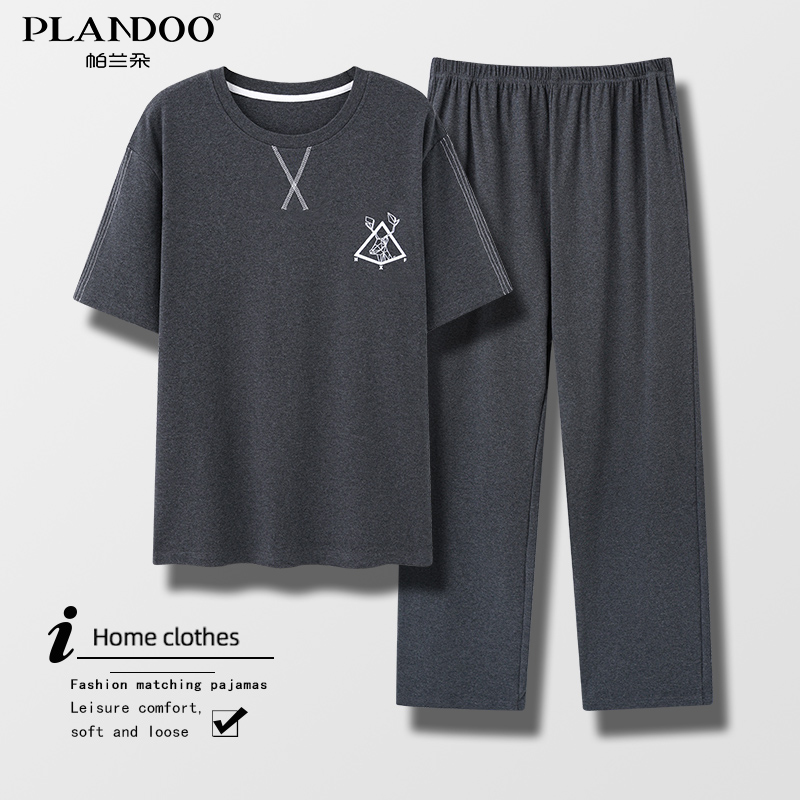 薄款 可外穿高级感男士 短袖 大码 家居服 长裤 帕兰朵纯棉睡衣男生夏季