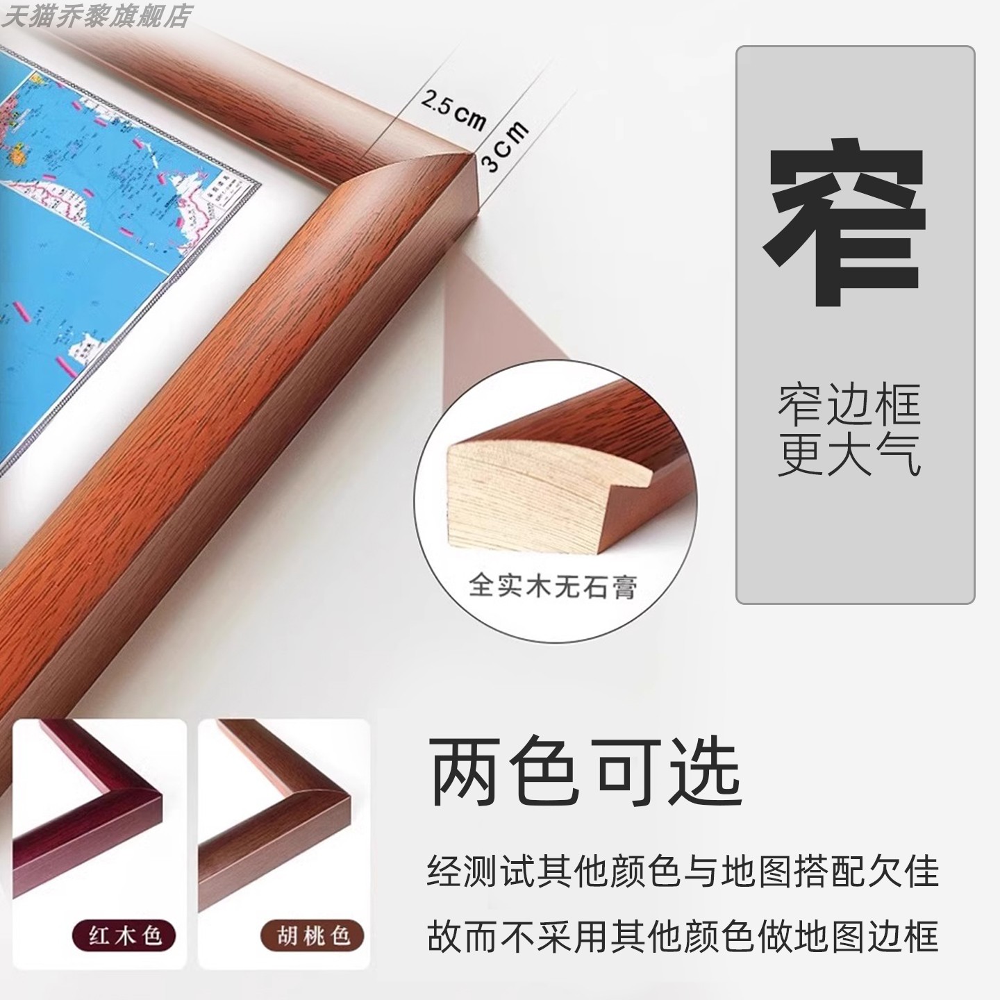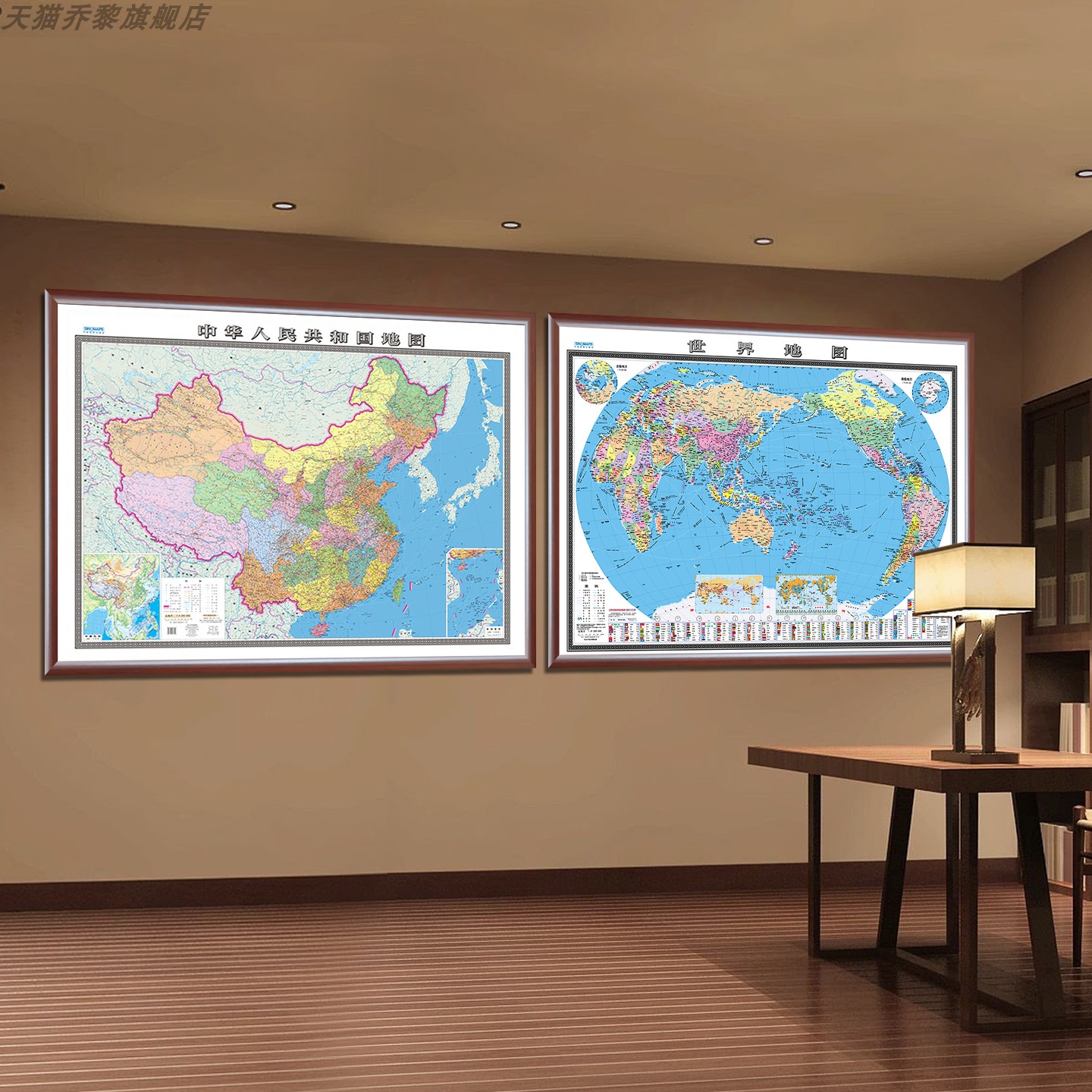 实木边框款 高清印刷多种尺寸款 式 家居展览馆居家沙发办公室背景墙装 中国世界政区平面裱框地图 磁吸可选 饰画 2025新版