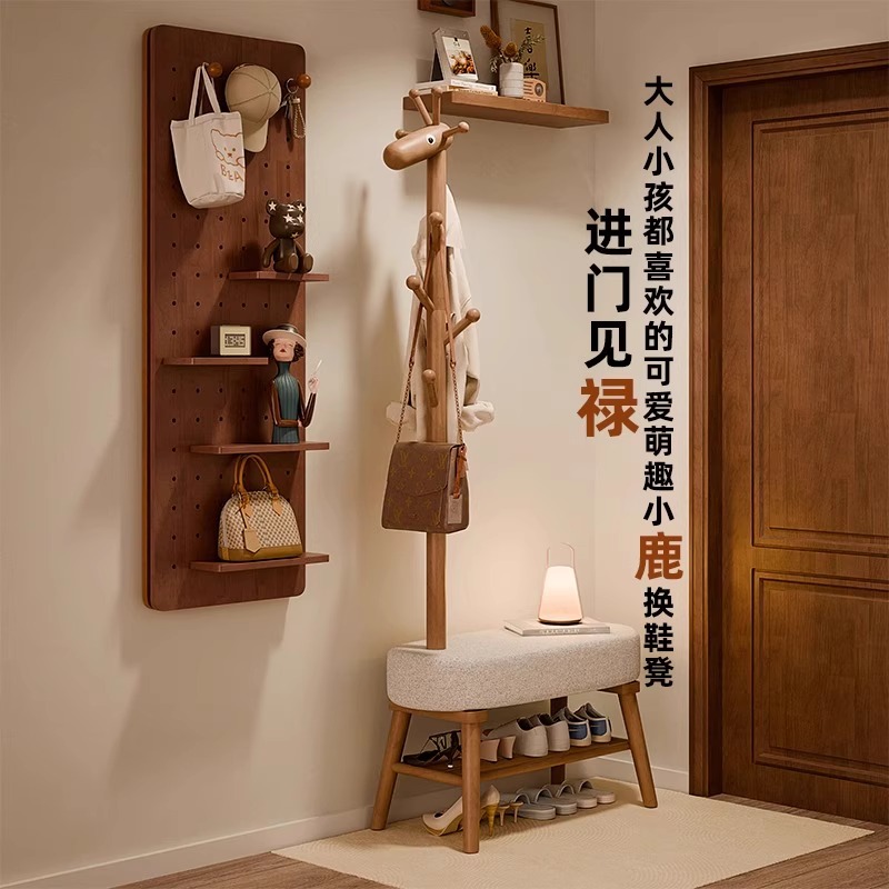 架可坐鞋 凳入户鞋 柜 凳衣帽架一体家用门口软包长条凳穿鞋 实木换鞋