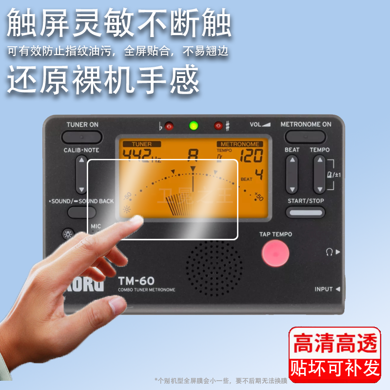 60贴膜pa700吉他调音节拍器TM60C保护膜TM 50TR贝司提琴古筝电子校音表屏幕膜非钢化膜 适用于KORG