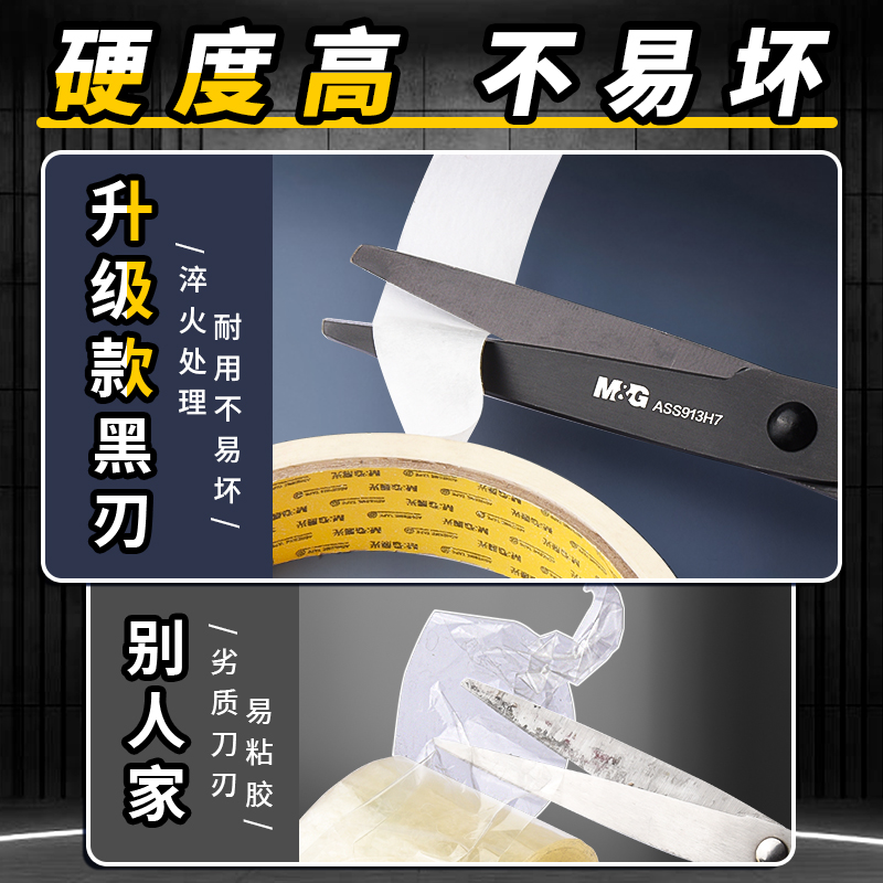 得力黑刃剪刀不锈钢剪子不粘胶厨房剪刀家用宿舍用学生安全手工剪纸刀办公拆快递学生小剪刀便携美工长用品