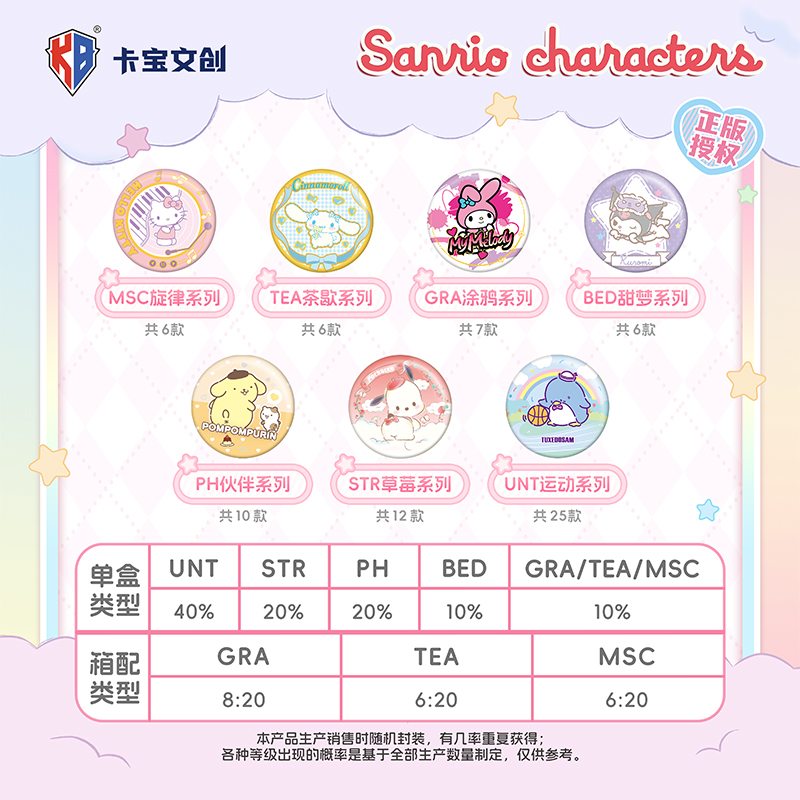 卡宝文创三丽鸥萌动徽章第三弹正版 谷子卡通周边挂件胸章女生礼物