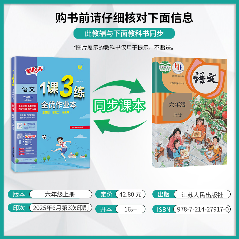 六年级上册 新版 小学语文 2025年秋季 教材同步提优阅读专题归类巩固必背知识手册全优作业本视频课 人教版 1课3练