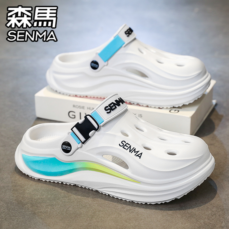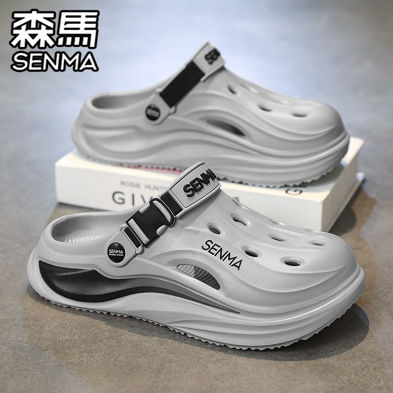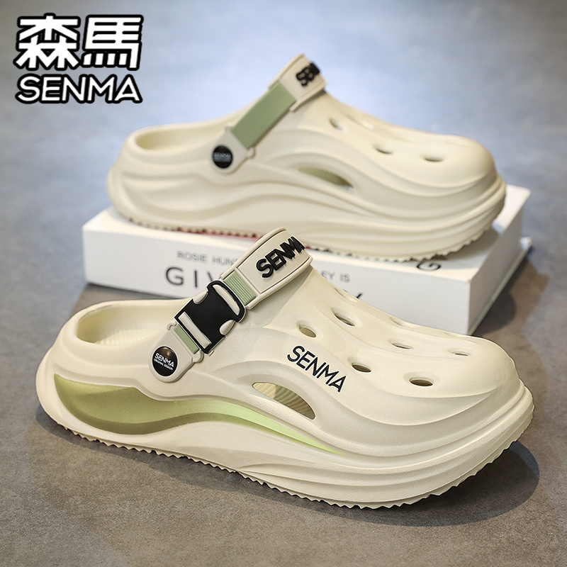 运动厚底增高海边沙滩凉鞋 外穿防滑耐磨包头拖鞋 女夏季 森马洞洞鞋