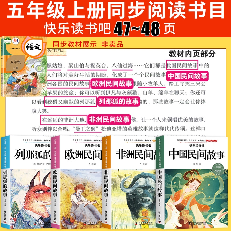 书目G牧羊人导读科学 故事田螺姑娘精选五上阅读书籍人教版 4册中国民间故事五年级上册快乐读书吧必读正版 课外书欧洲非洲列那狐