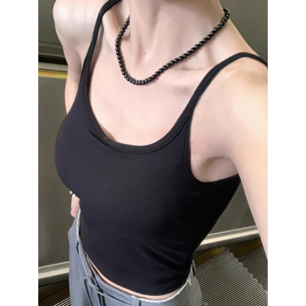 上衣 内搭打底外穿无袖 带胸垫小吊带背心女夏季 设计感纯欲辣妹修身