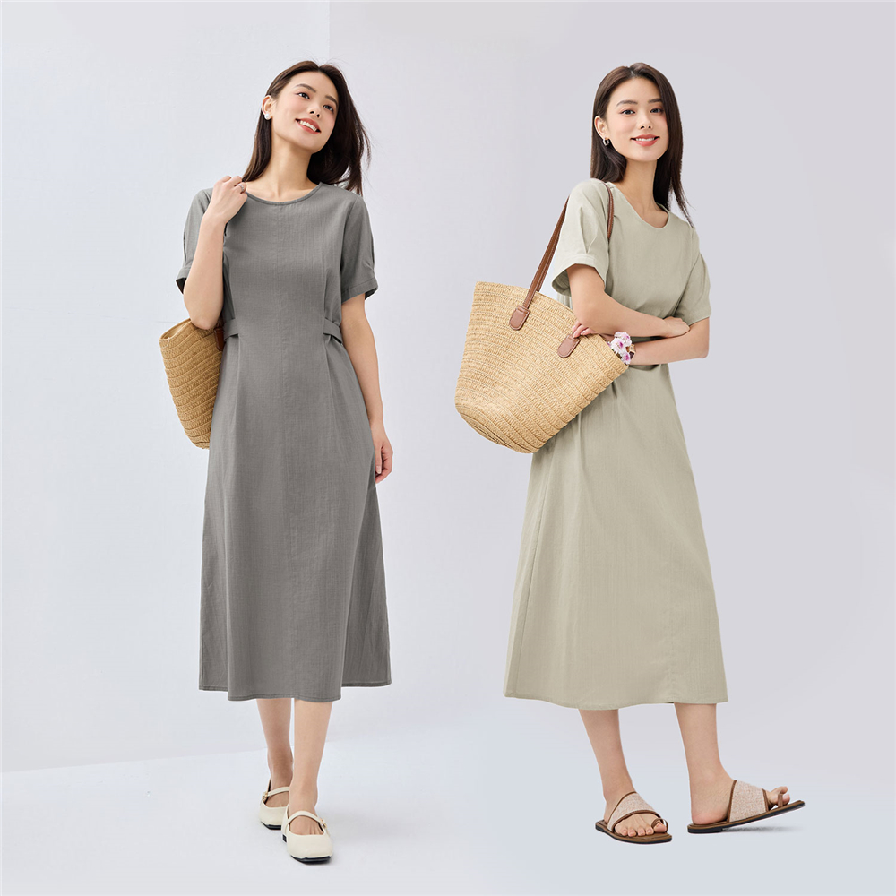 COCOBELLA简约气质黑色收腰极简风连衣裙短袖 长裙FR3033