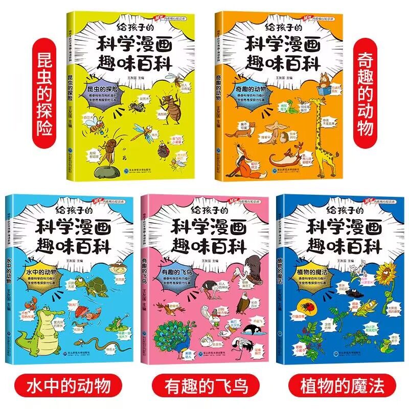 奥秘趣味故事科普丛书 魔法动植物趣味百科昆虫探险奇趣动物水中动物儿童科学漫画探索世界 给孩子 科学漫画趣味百科全5册植物