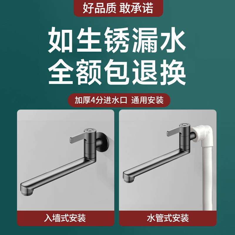 德国拖把池加长水龙头入墙式 单冷阳台厨房专用4分可旋转全铜家用
