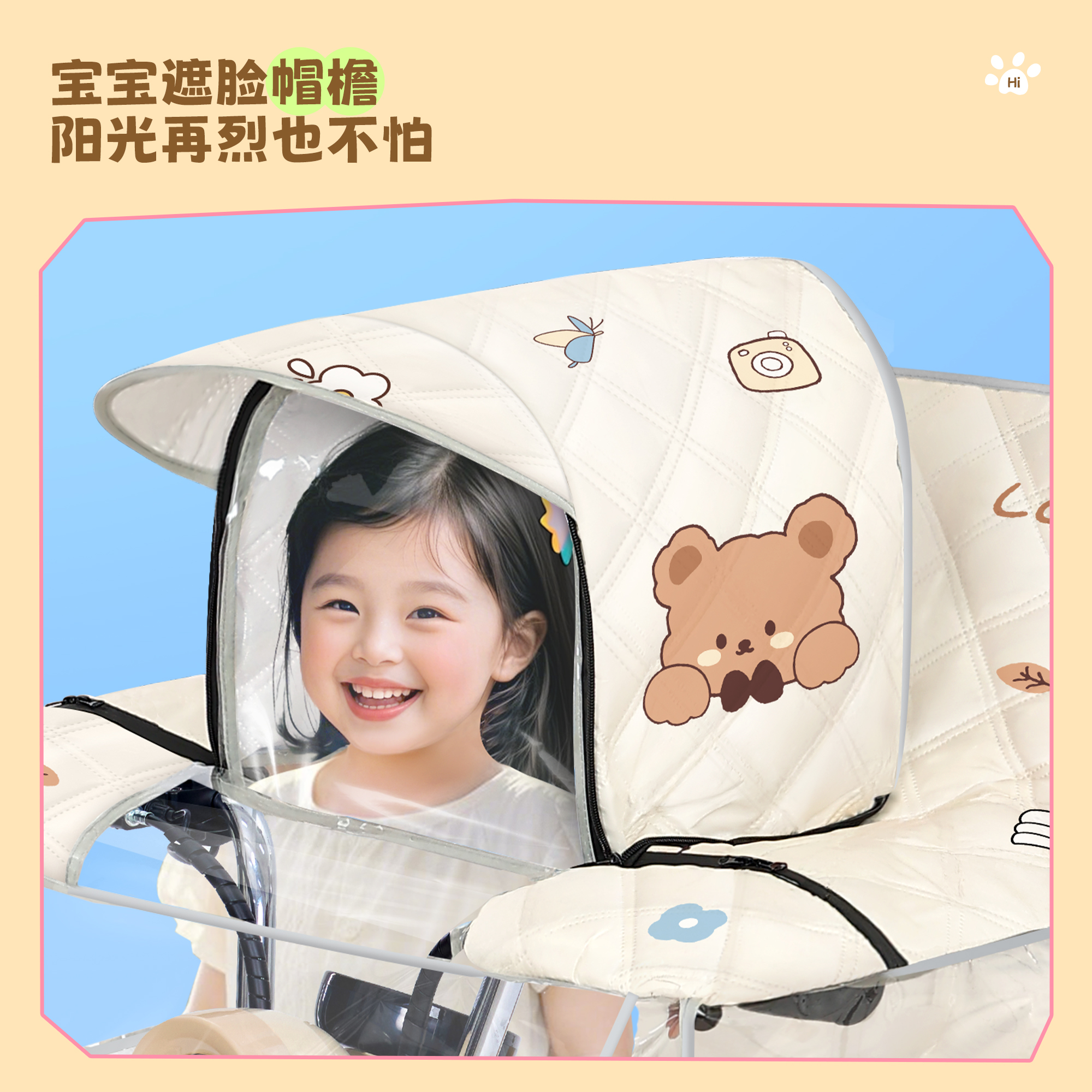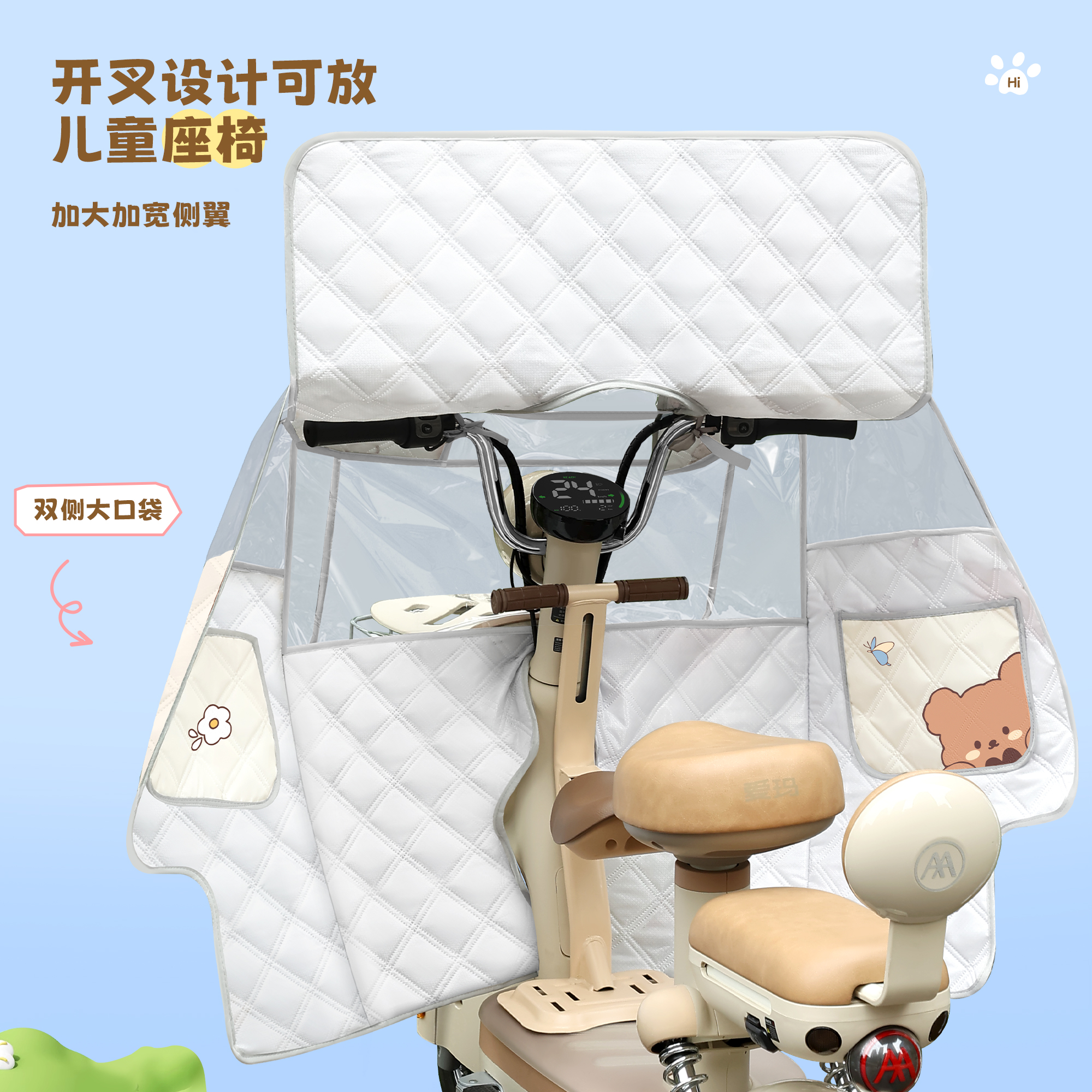 通用 加绒加厚电瓶摩防水防风罩四季 亲子款 电动车挡风被带小孩冬季