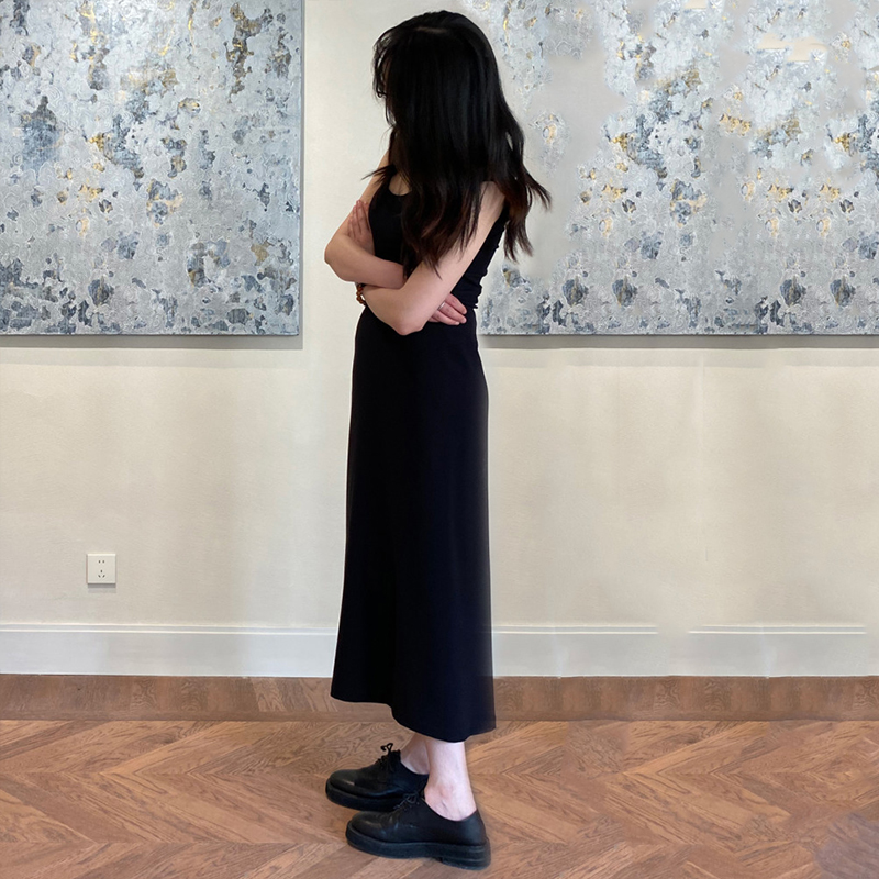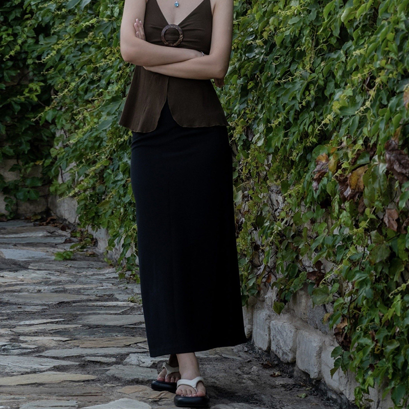 黑色直筒裙小个子韩版 高腰显瘦一步不开叉裙春夏包臀长裙子 中长款